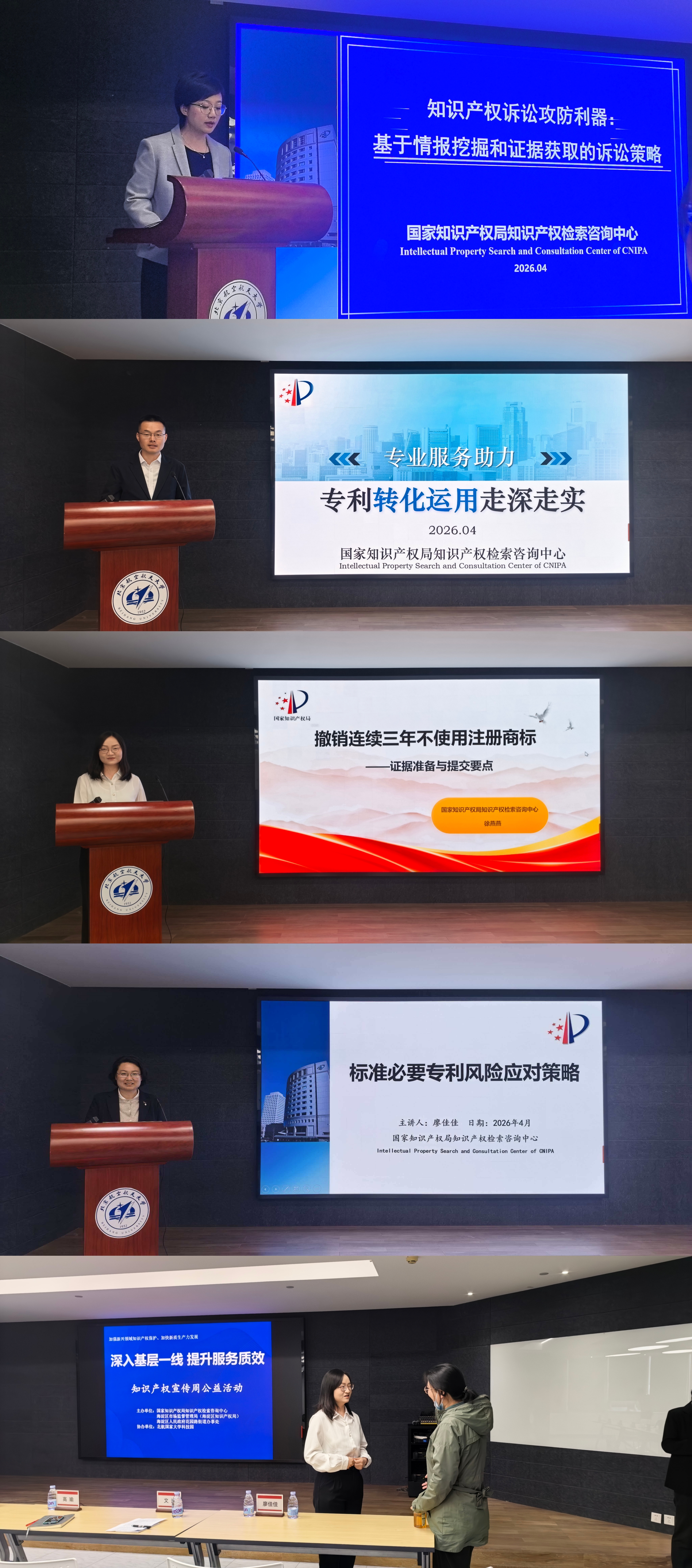 为进一步提升知识产权服务质效、夯实基层知识产权工作根基,4.26知识产权日来临之际,国家知识产权局知识产权检索咨询中心联合海淀区知识产权局、海淀区花园路街道办事处,组织开展知识产权宣传周公益活动,深入基层一线、贴近创新主体,为花园路街道辖区企事业单位及创新主体提供专业、优质的知识产权服务,精准赋能。活动设置知识产权公益讲座和知识产权公益咨询两个环节。