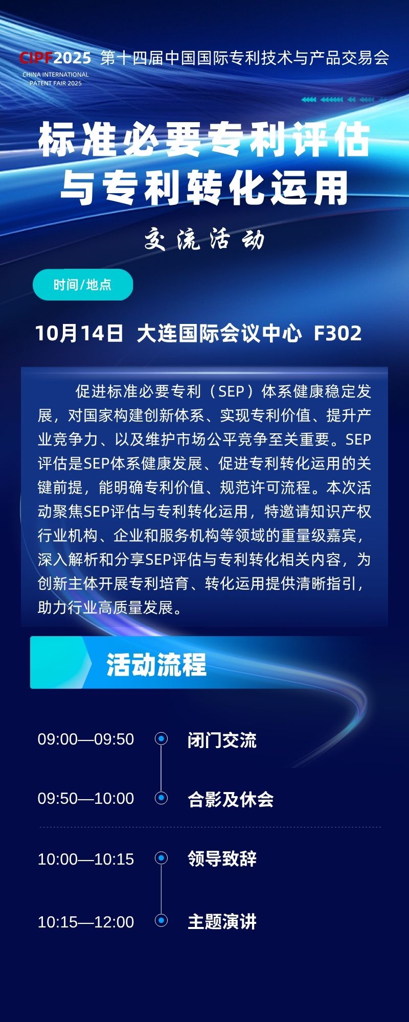 第十四届中国国际专利技术与产品交易会(CIPF 2025)将于2025年10月13日至15日,在大连国际会议中心举办。